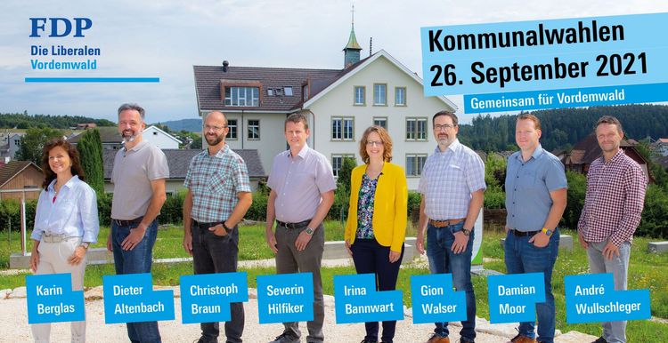 Anlässlich der Nominationsveranstaltung vom 12. August auf der Rüti präsentierte die FDP Vordemwald ihre 8 Kandidatinnen und Kandidaten für die Gesamterneuerungswahlen 2021.